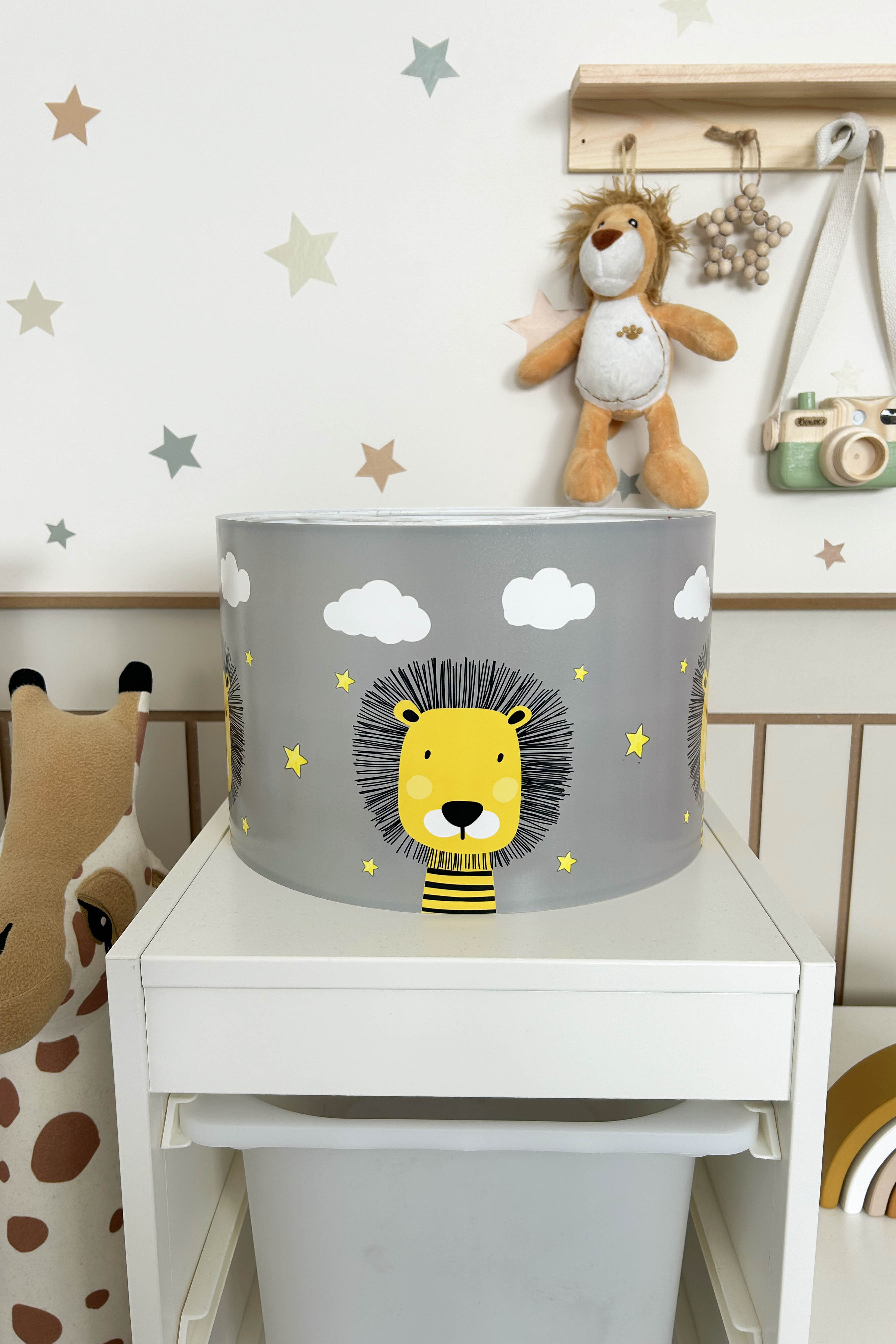 • Cloudy Lion Themed Children's Room Pendant Lamp - 30cm Decorative Hanging Light with Adjustable Cable - Non-Toxic Water-Based Print