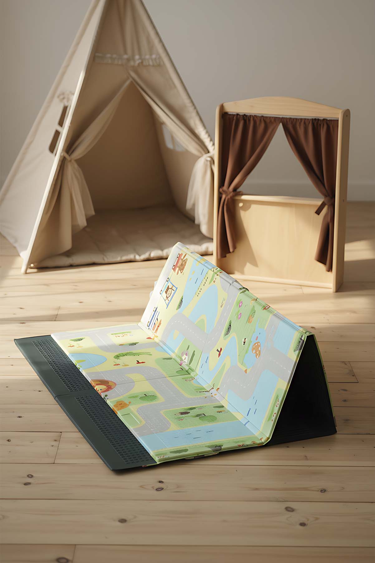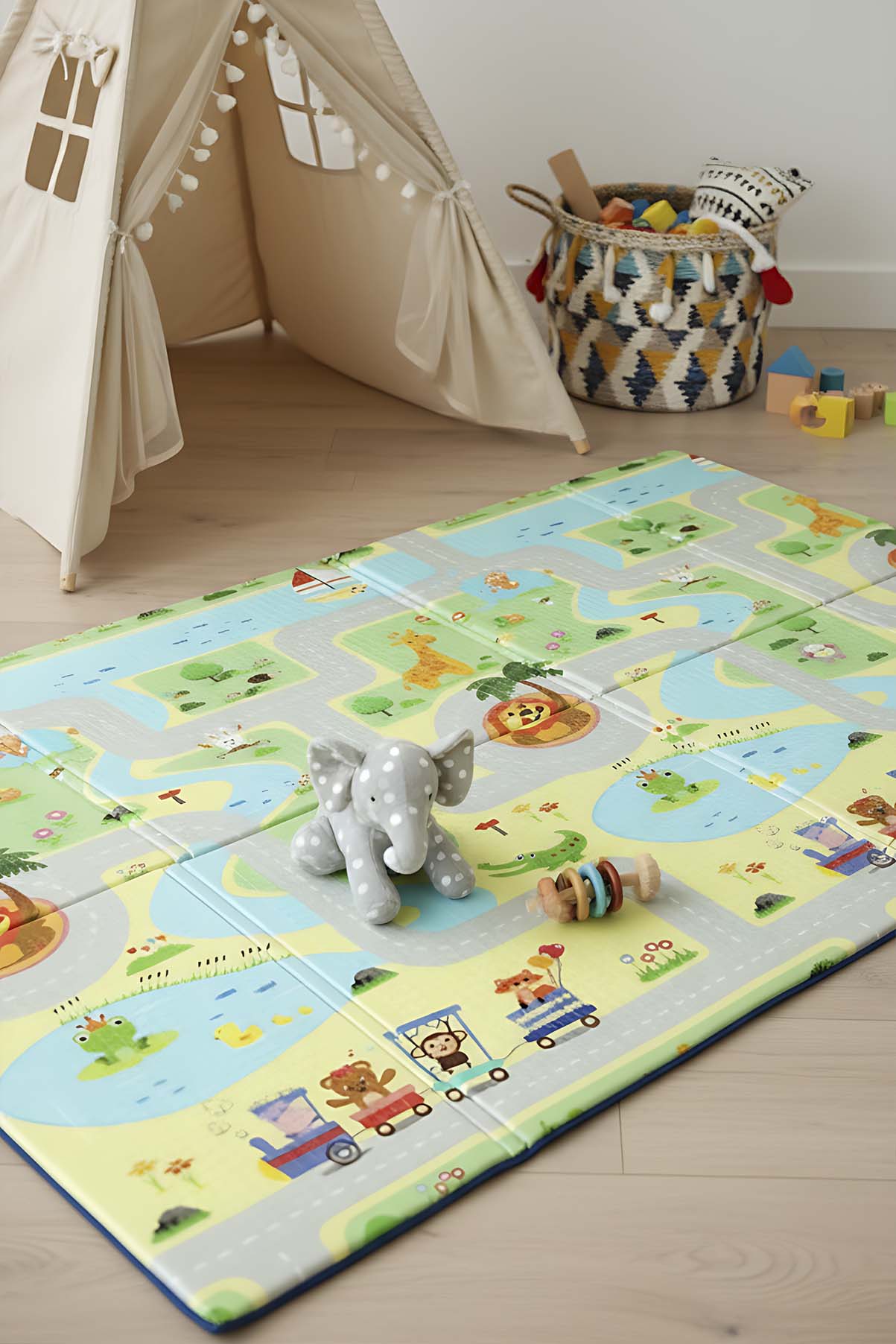 • Green Track Children’s Play Rug: Foldable, Waterproof & Extra Large, 130x200 cm