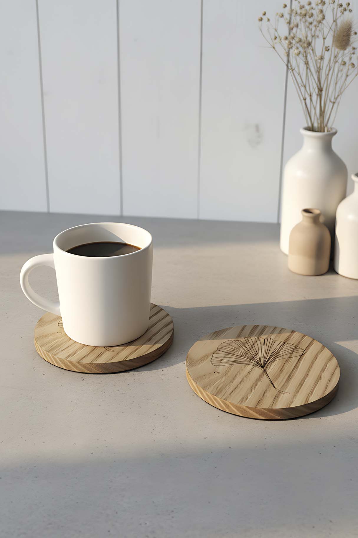 • Wooden Chestnut Tree 2-Piece Coaster Set