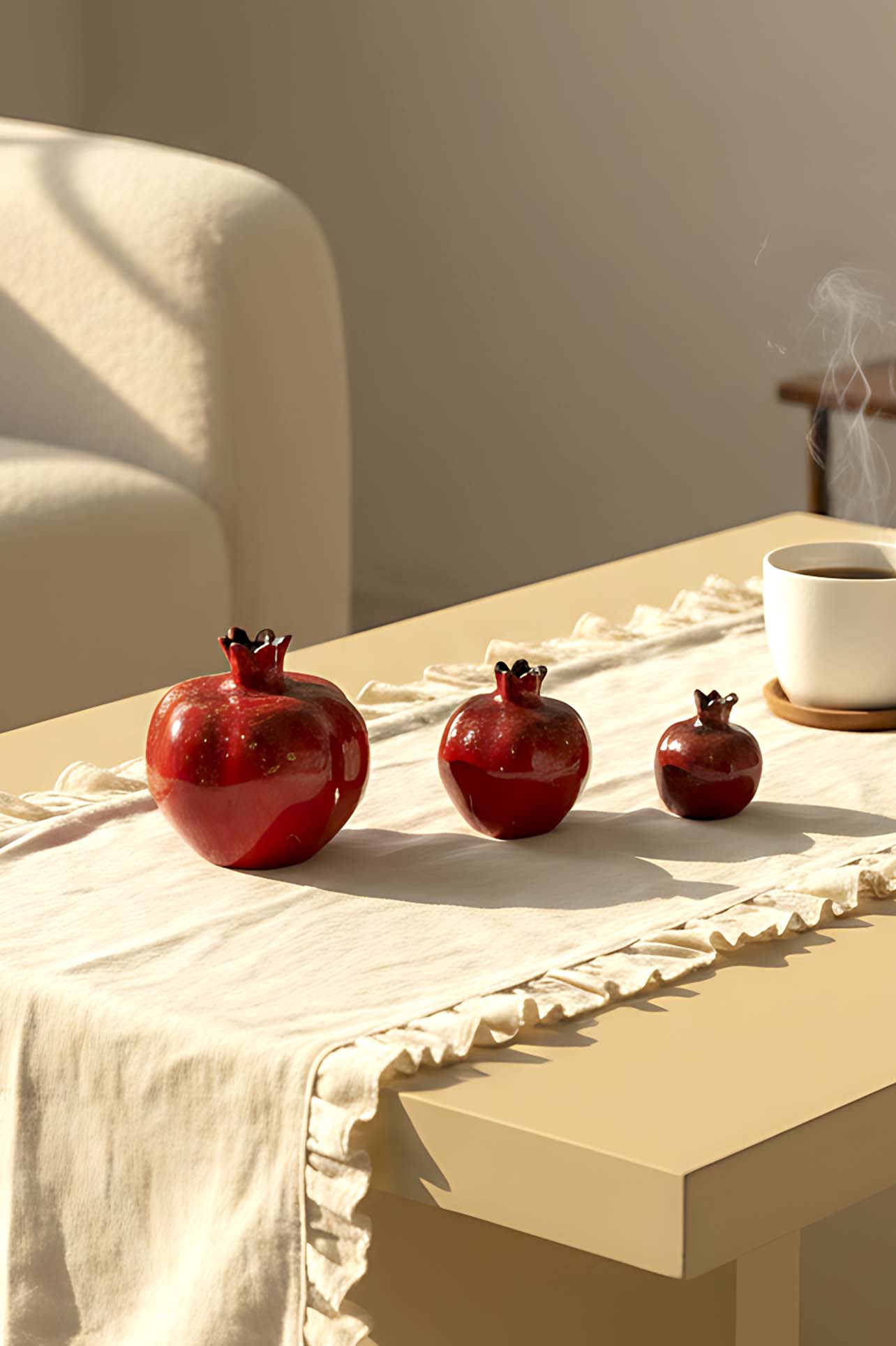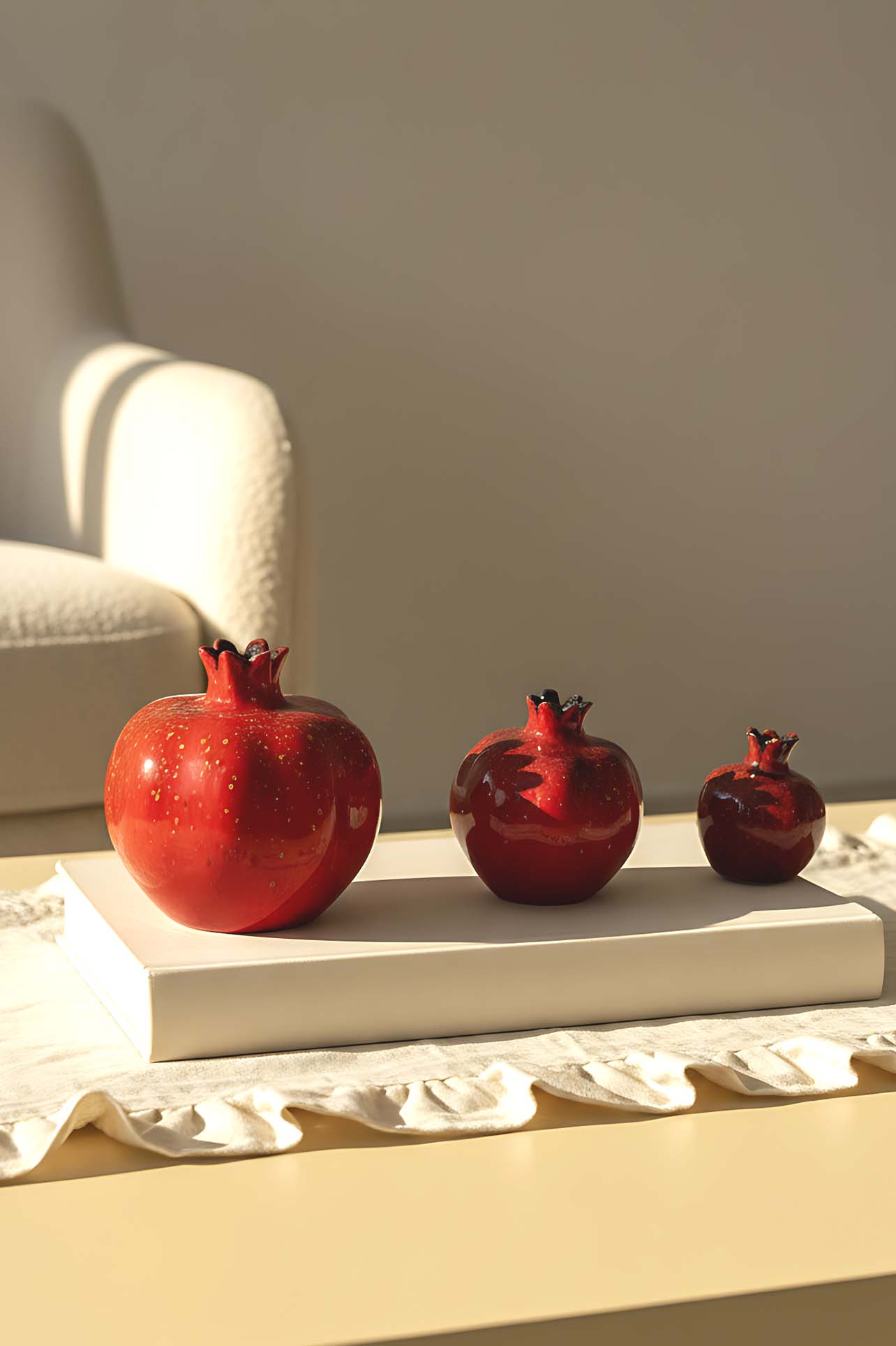 Designed with a vibrant red color and a smooth glossy surface, the Full Pomegranate Figurine is a classic and elegant decorative complement.