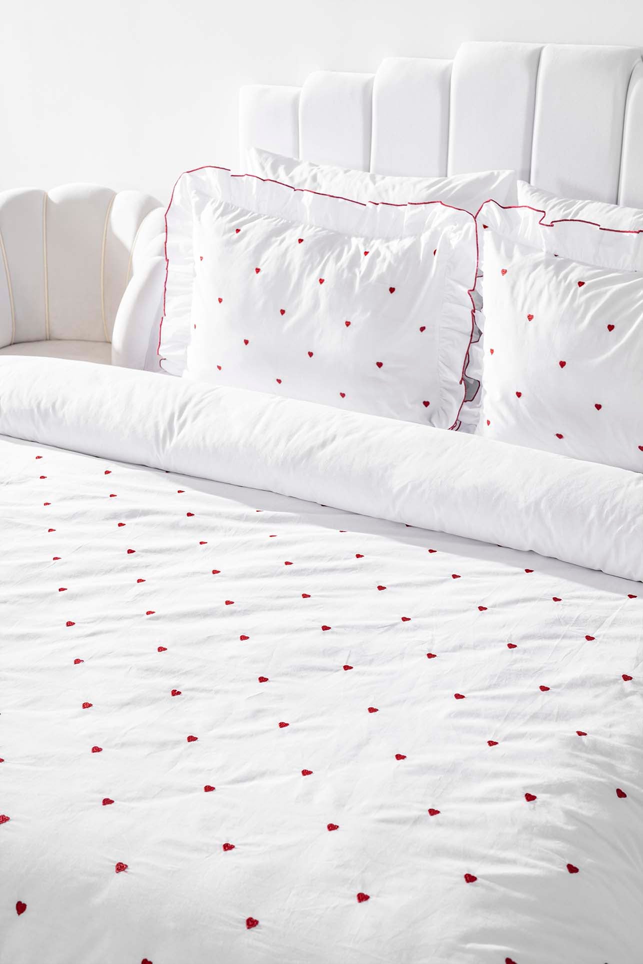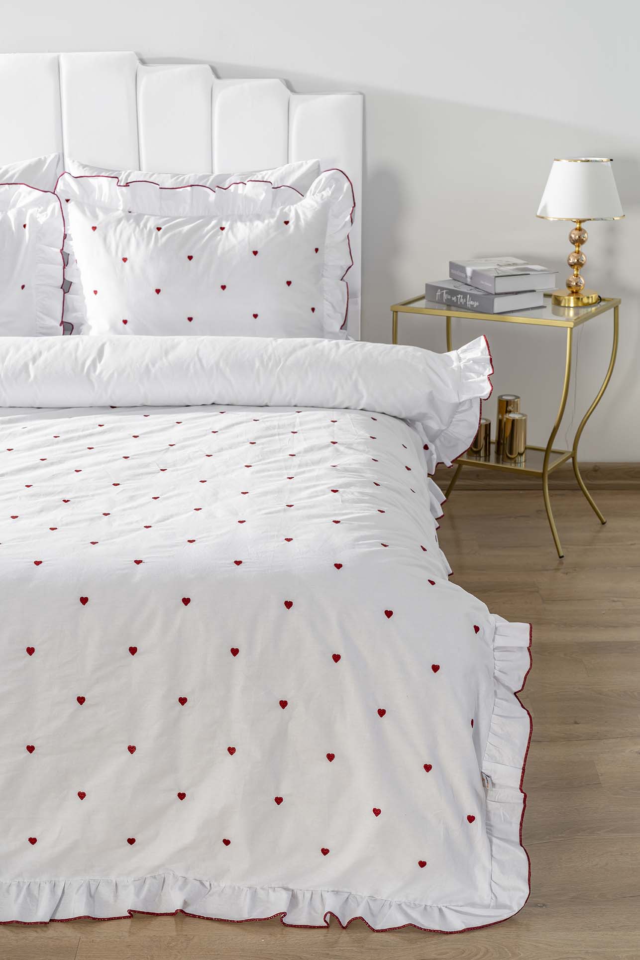 The Luva Red Heart embroidered double duvet cover set is a special design that brings both elegance and warmth to your bedroom.