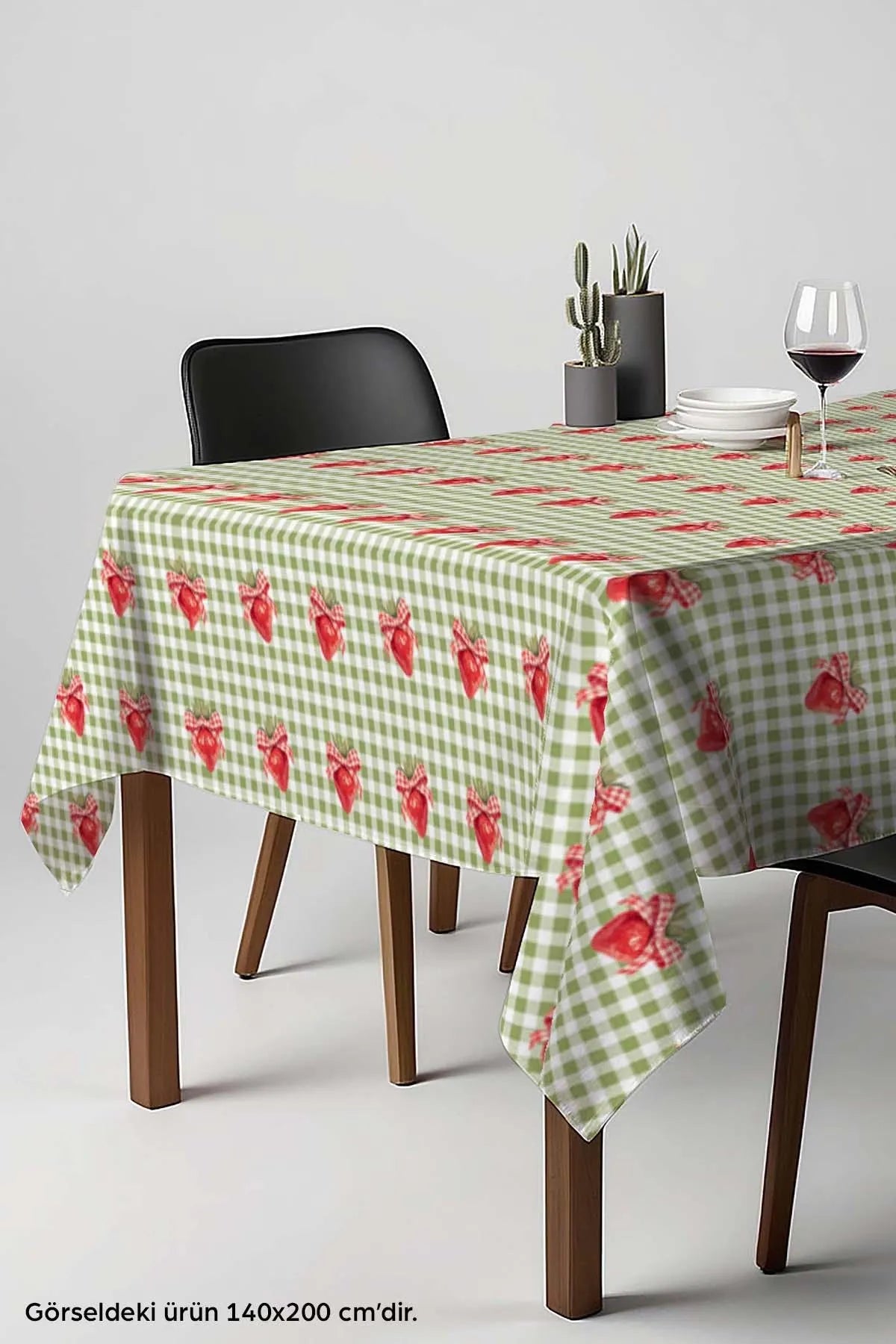 Green Checkered Strawberry Pattern Tablecloth, Table Linen, Picnic Cloth
