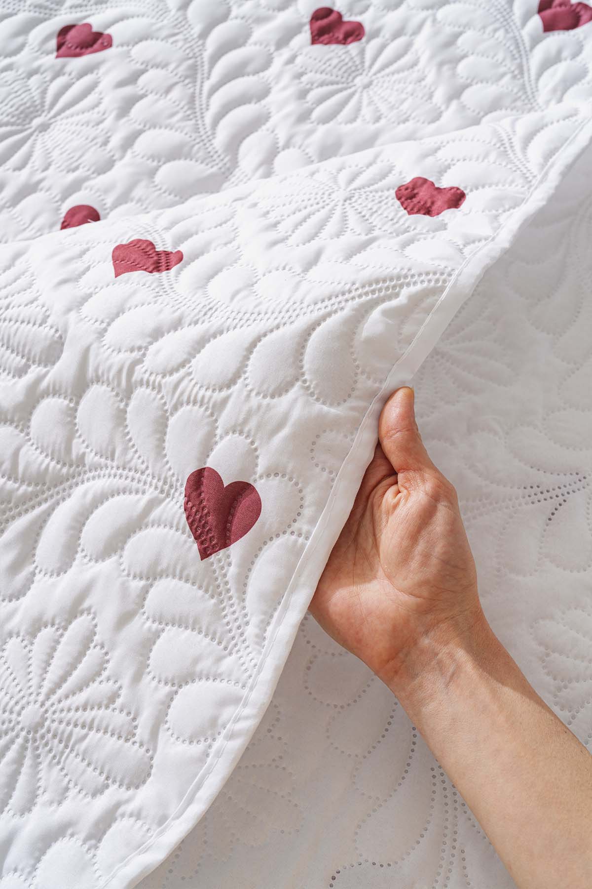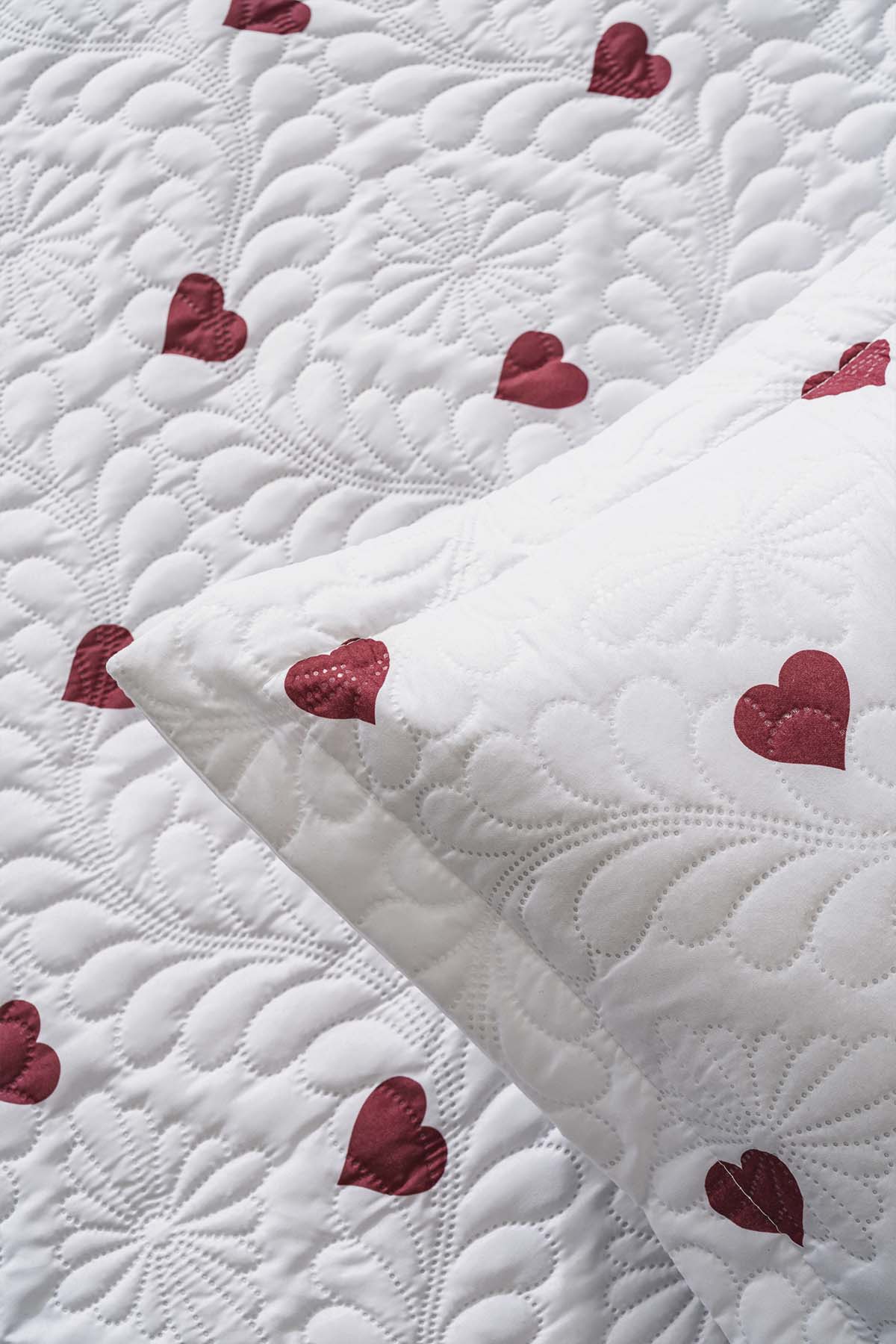 Lovely Heart-Patterned Micro Bedspread and Pillowcase Set consists of 3 pieces.