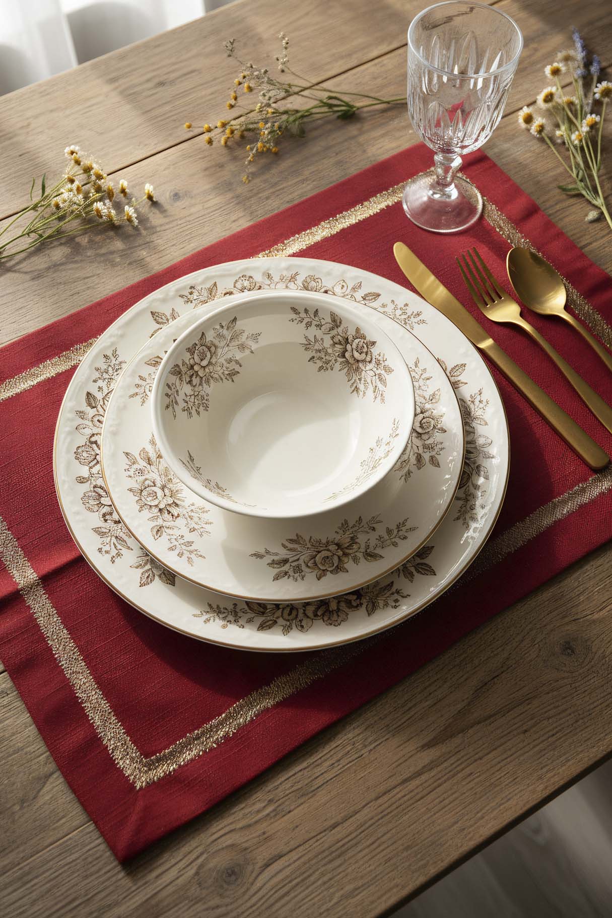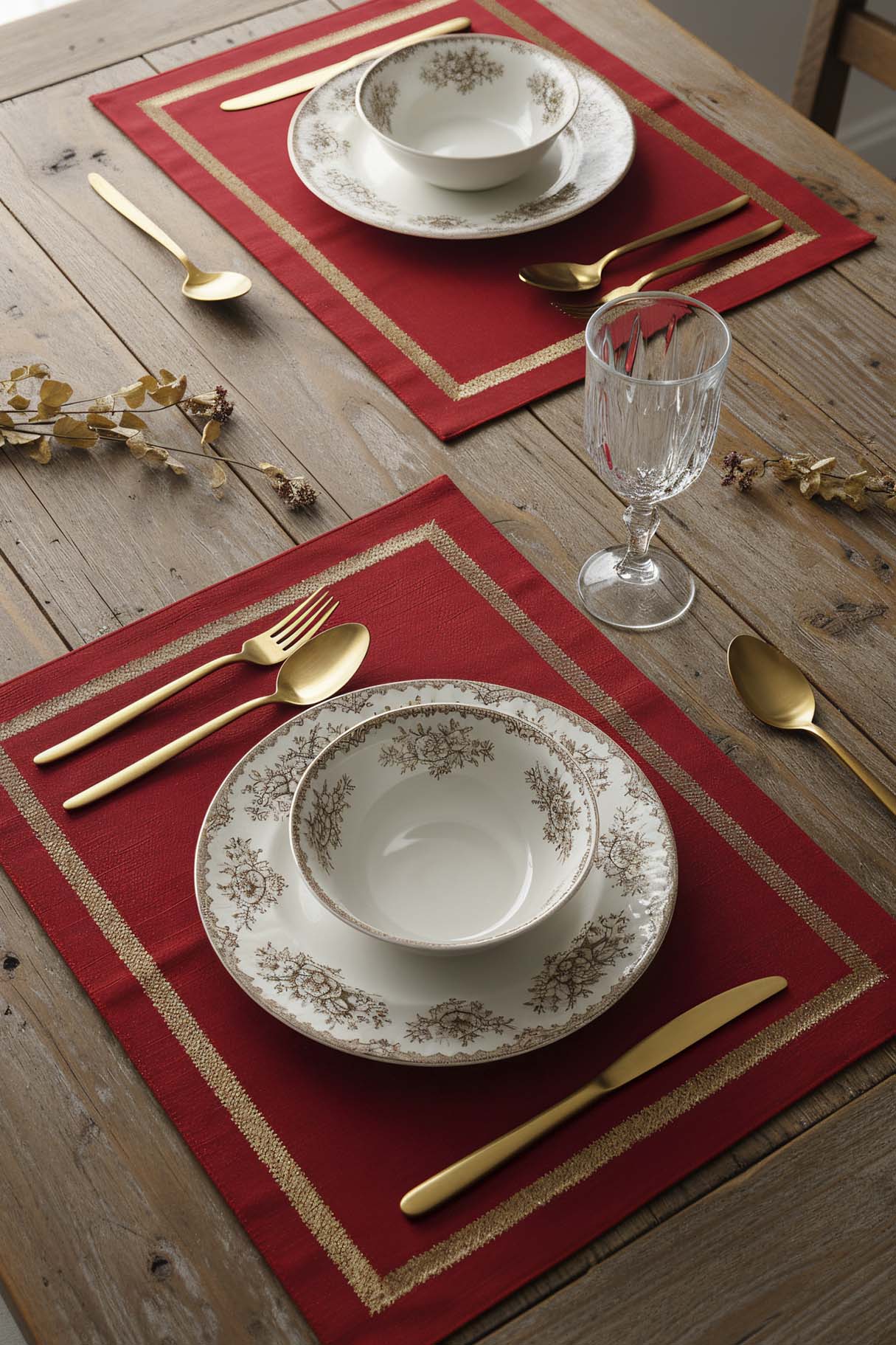 Red Gold Frame Embroidered 2-Piece Placemat Set This set, combining the color red with modern and durable polyester quality, brings both elegance and practicality to your table. Material: Made from 100% high-quality polyester. Design: Offers an aesthetic look with elegant gold frame embroidery. Dimensions: 30x50 cm provides an ideal usage area for all types of dinnerware. Durability: The color will not fade, it will not shrink, and it is suitable for long-term use. Package Contents: 2 placemats.