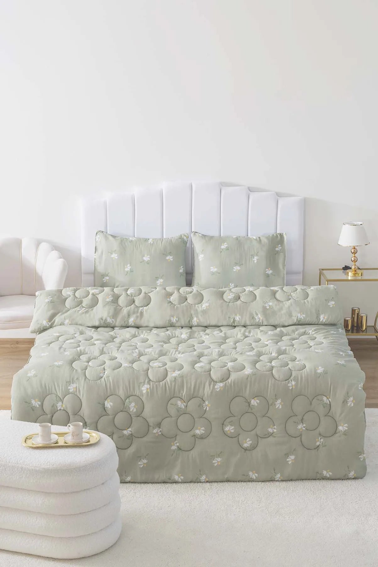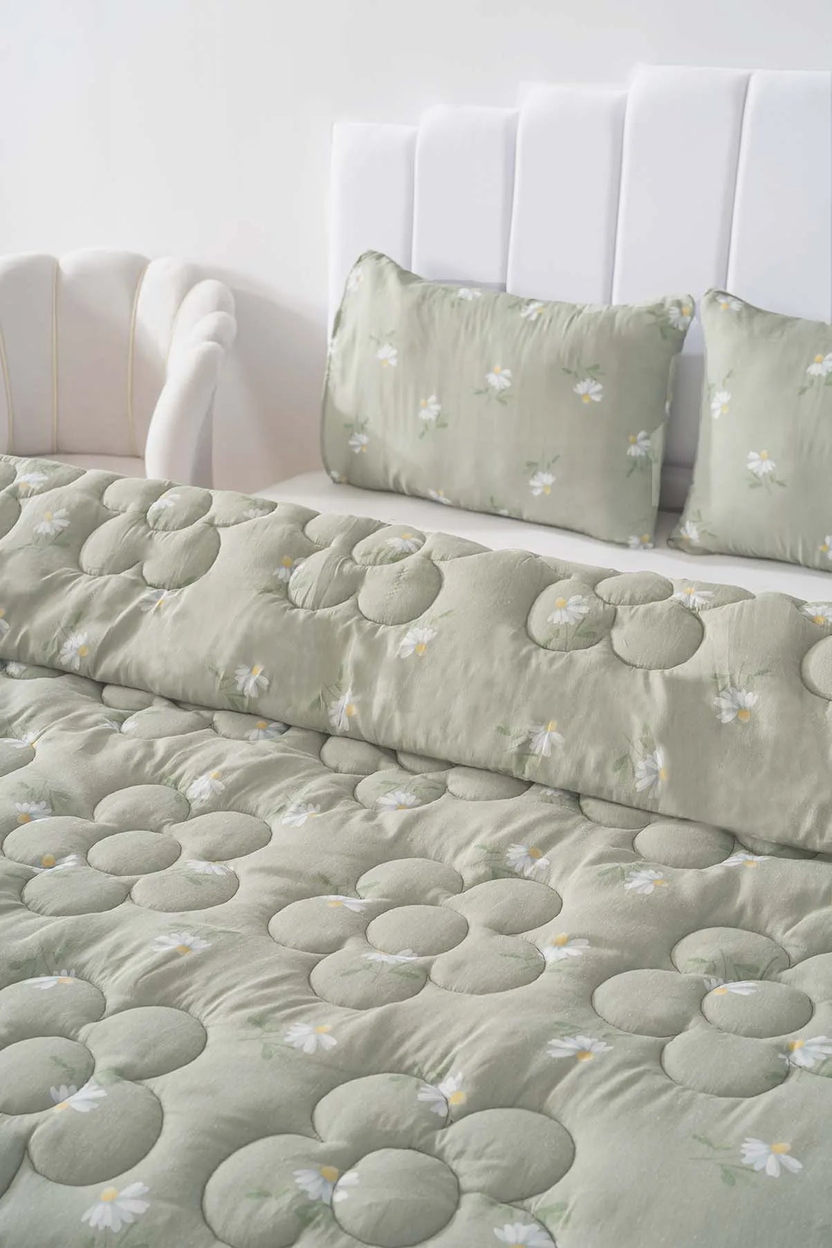 • Green Daisy Single Double-Sided Daisy Quilted Quilt  – 160x215 cm