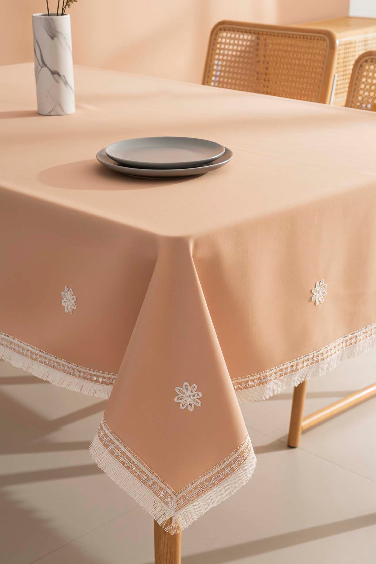 • Silvio Salmon Guipure Floral Tablecloth – Elegant Lace Detail, Cotton Blend Fabric, 160x220 cm