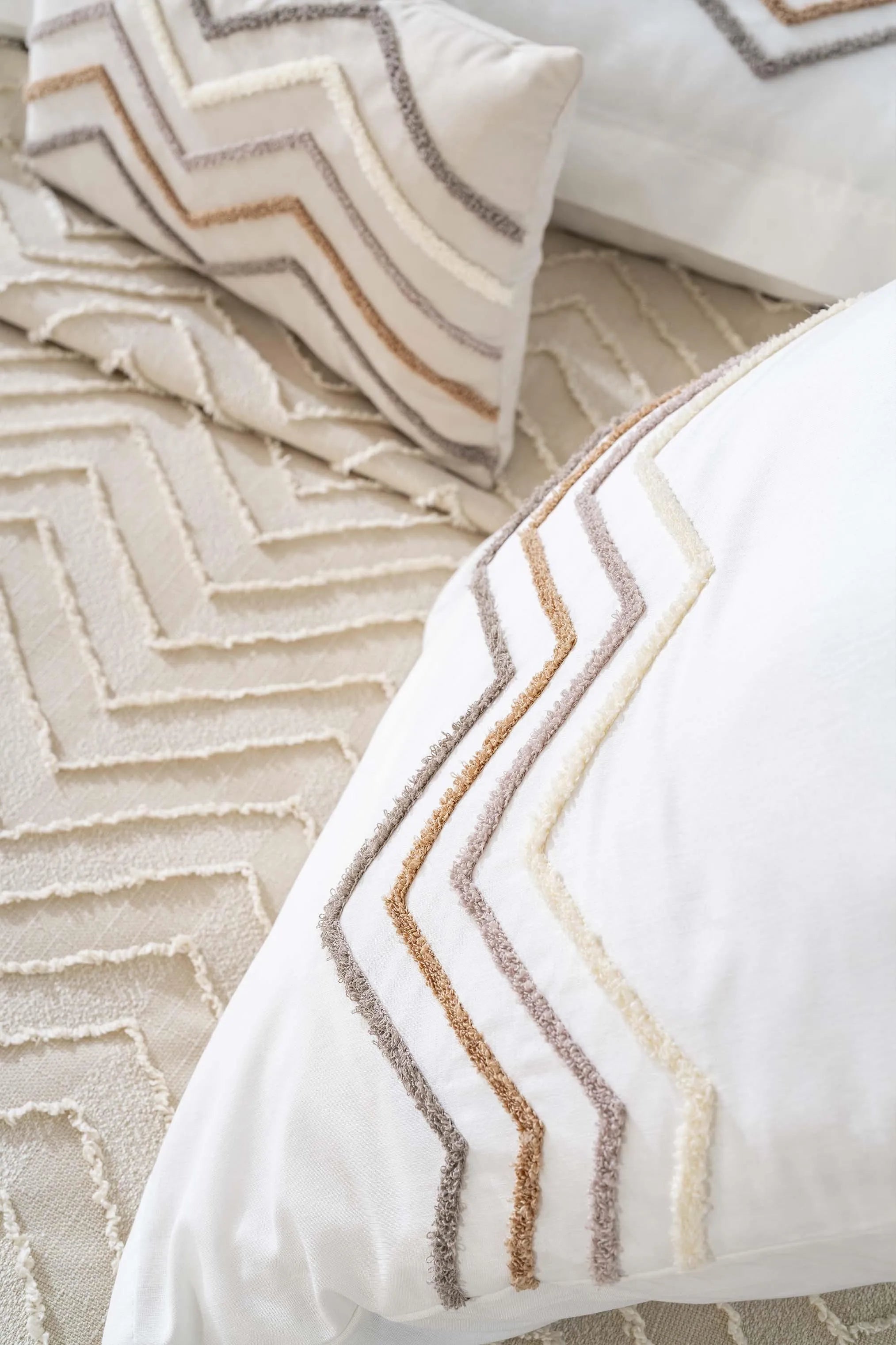 Made from cotton fabric, it offers a breathable structure and a soft texture for a comfortable sleep.