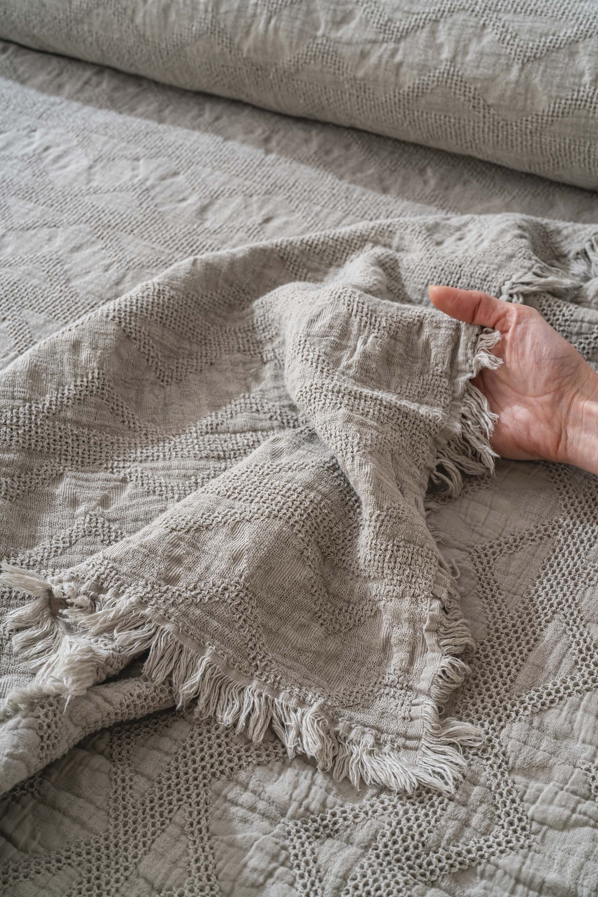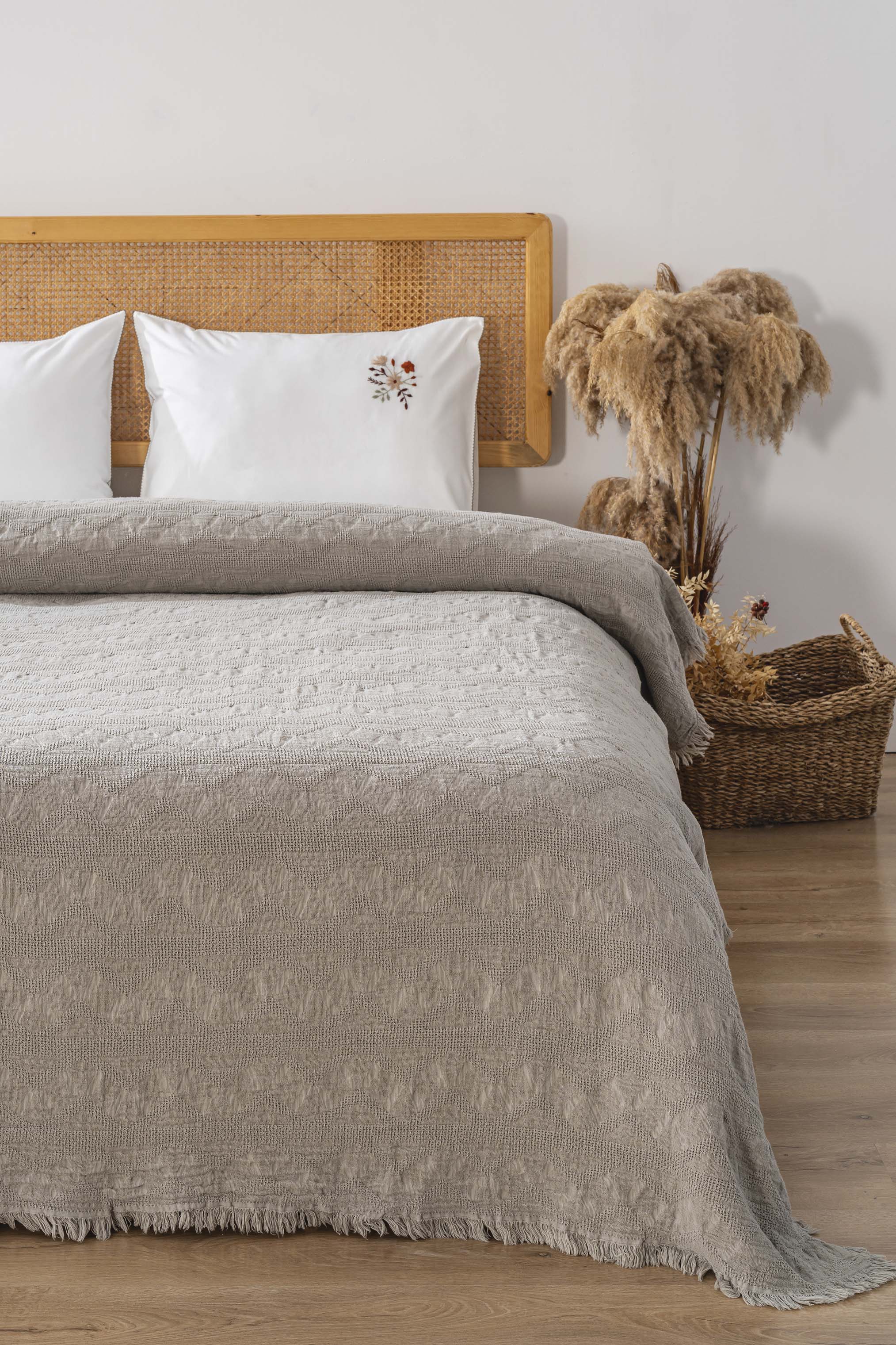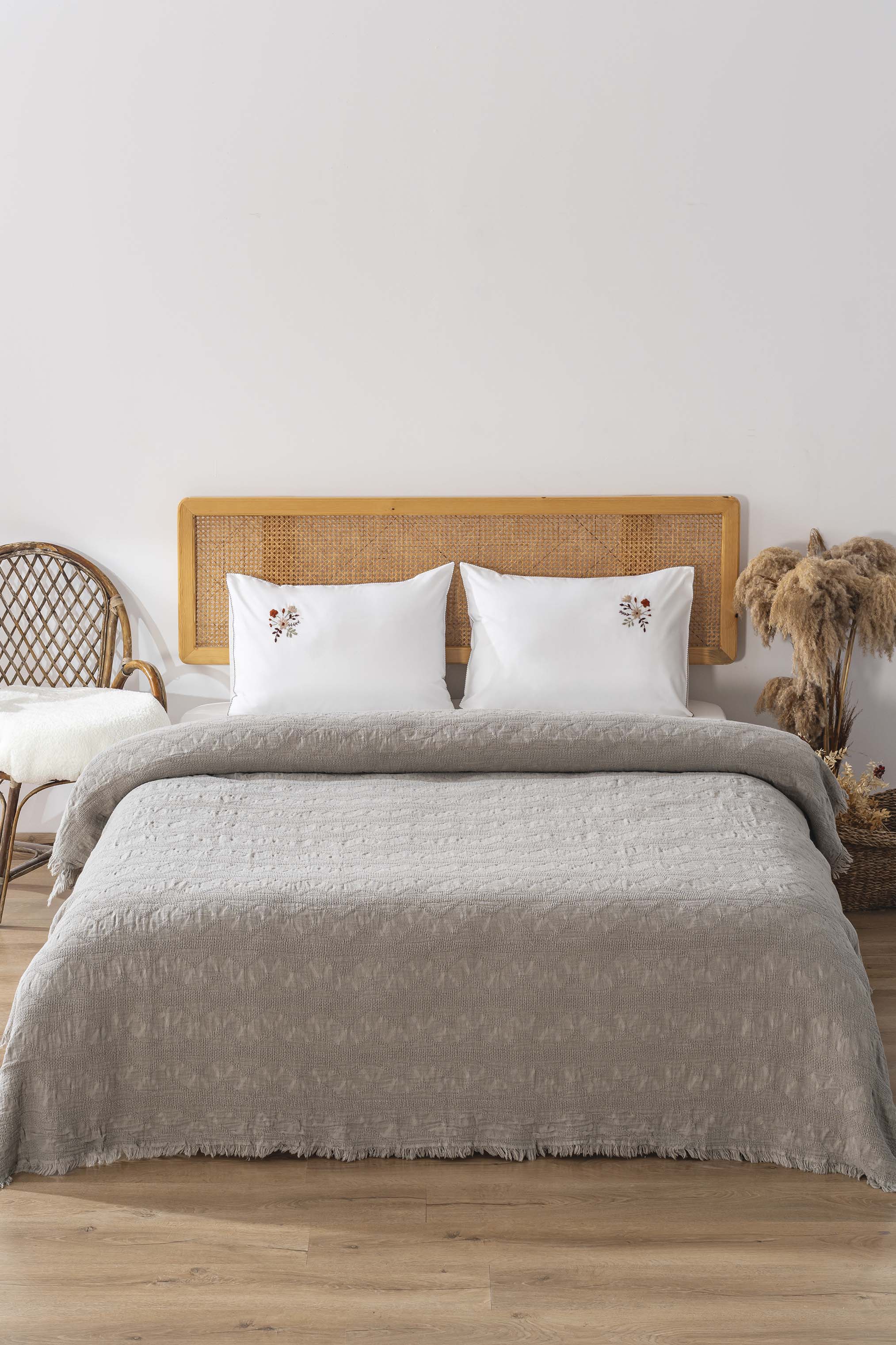 • Felix Stone Double Cotton Embroidered 4-Piece Bedspread & Dowry Set