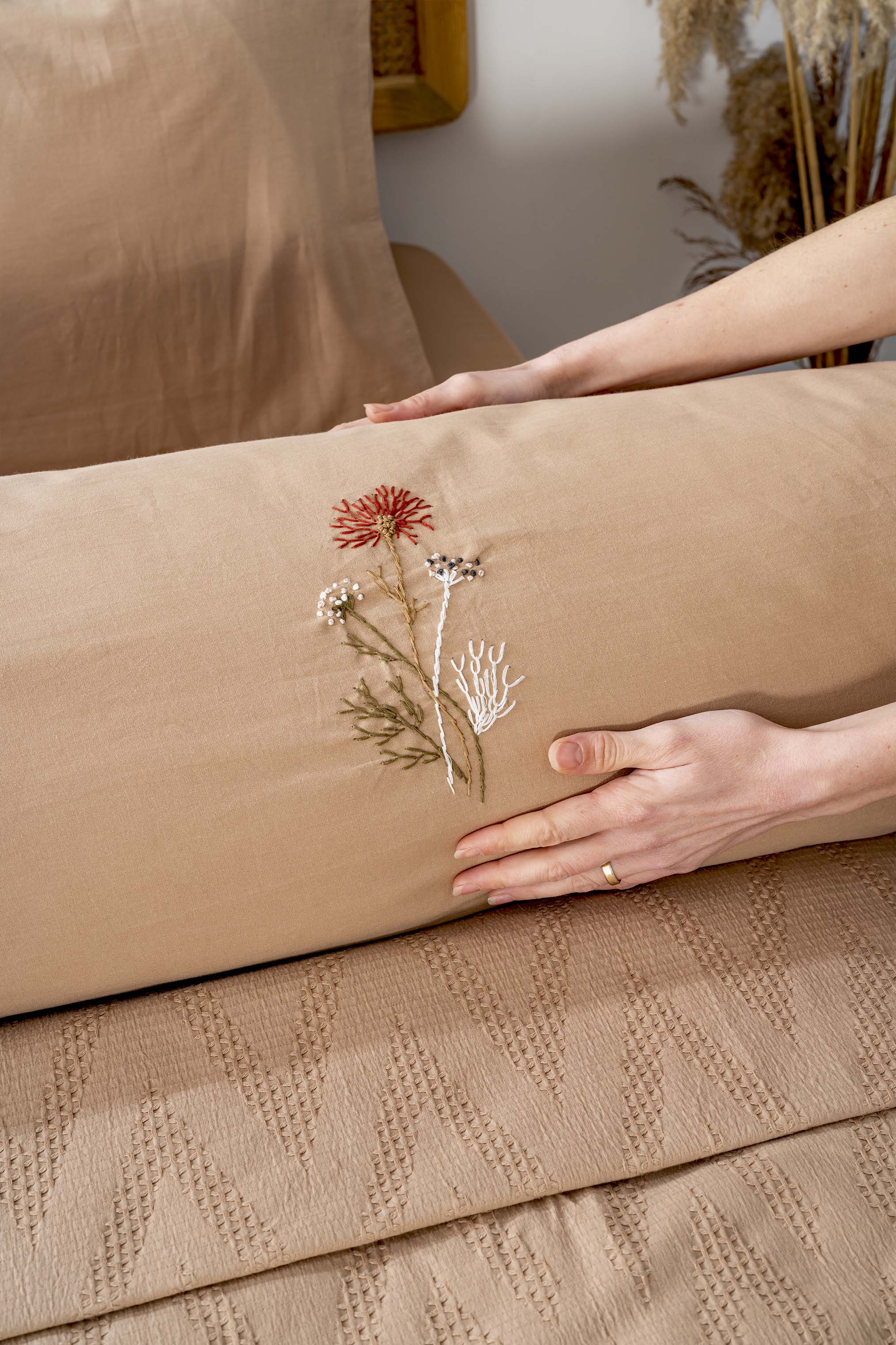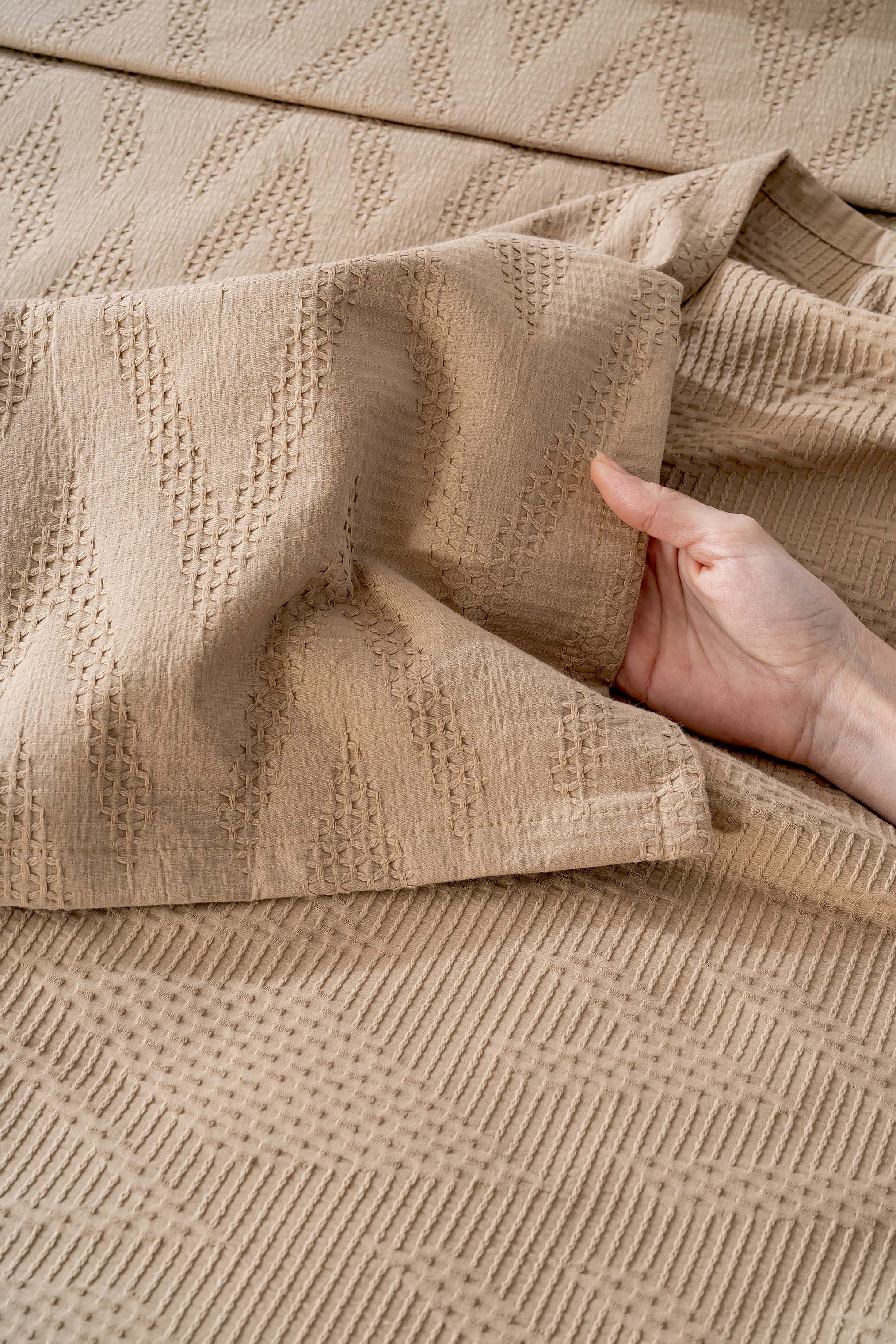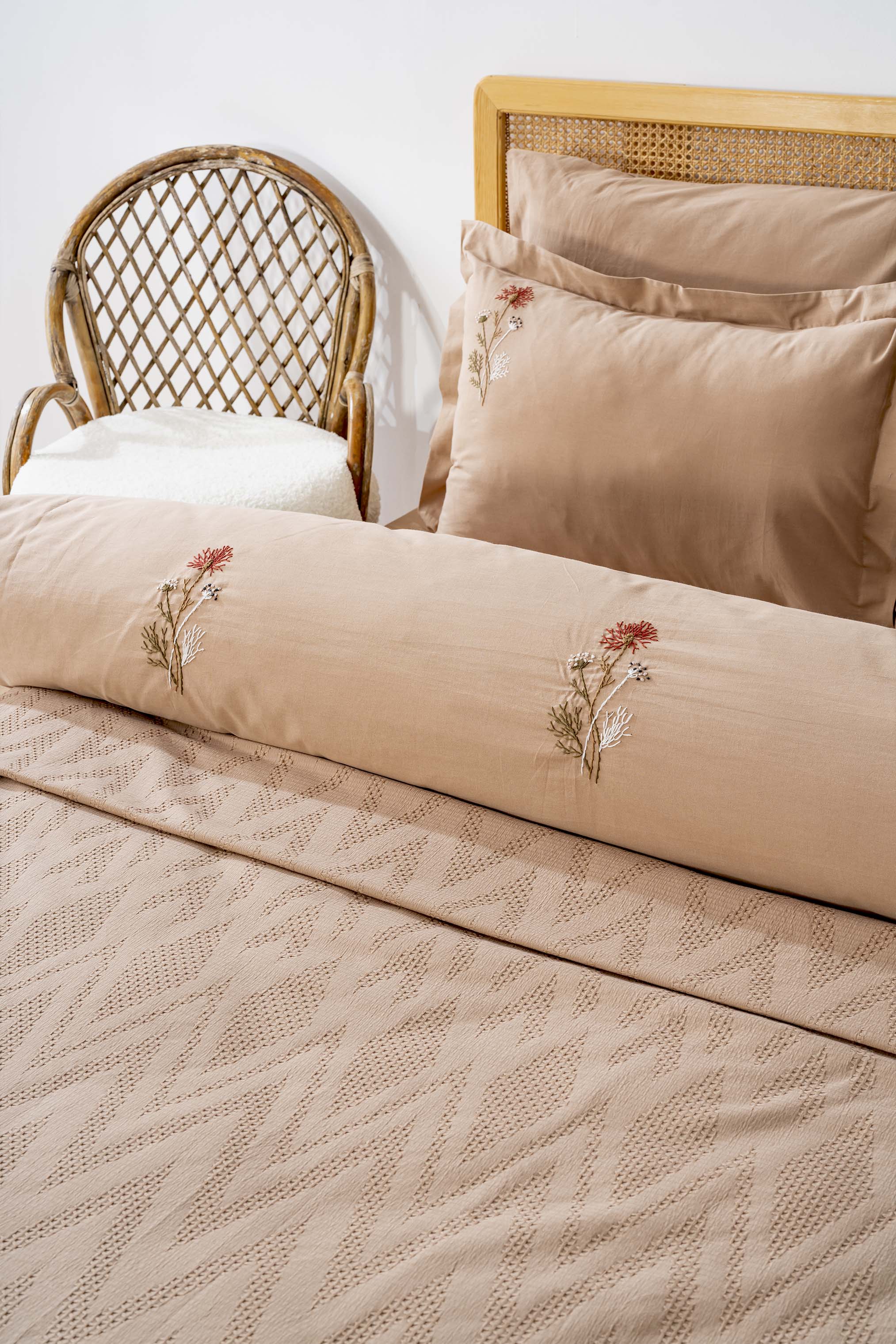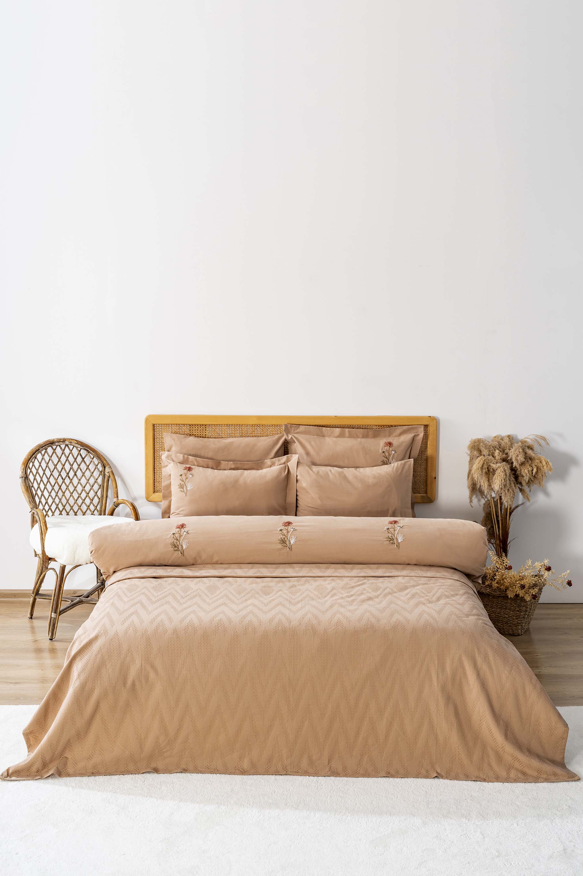 Noris Camel Nakışlı Çift Kişilik Nevresimli Pike Takımı – 7 Parça Çeyiz Seti %100 Pamuklu