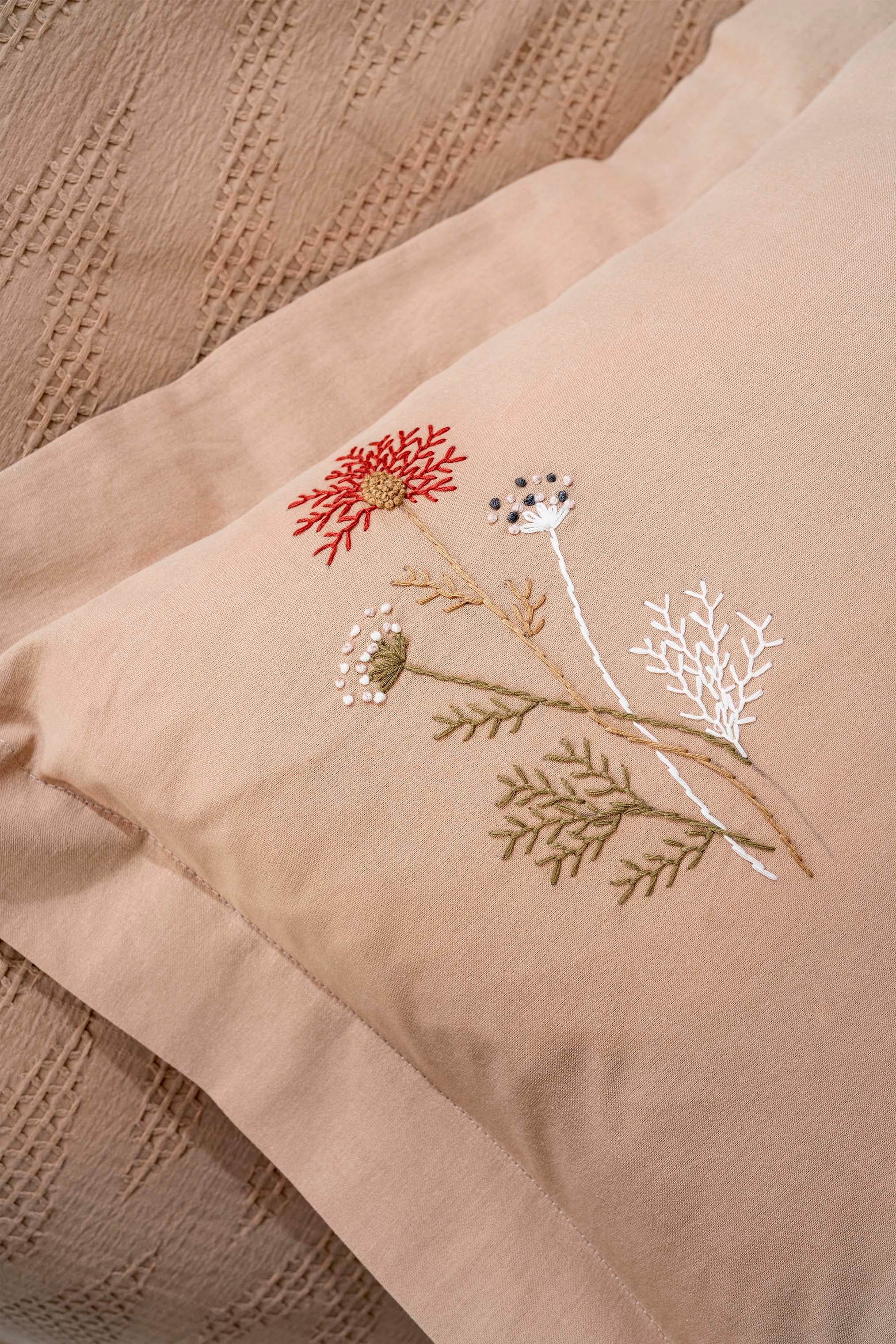• Noris Camel Nakışlı Çift Kişilik Nevresimli Pike Takımı – 7 Parça Çeyiz Seti %100 Pamuklu