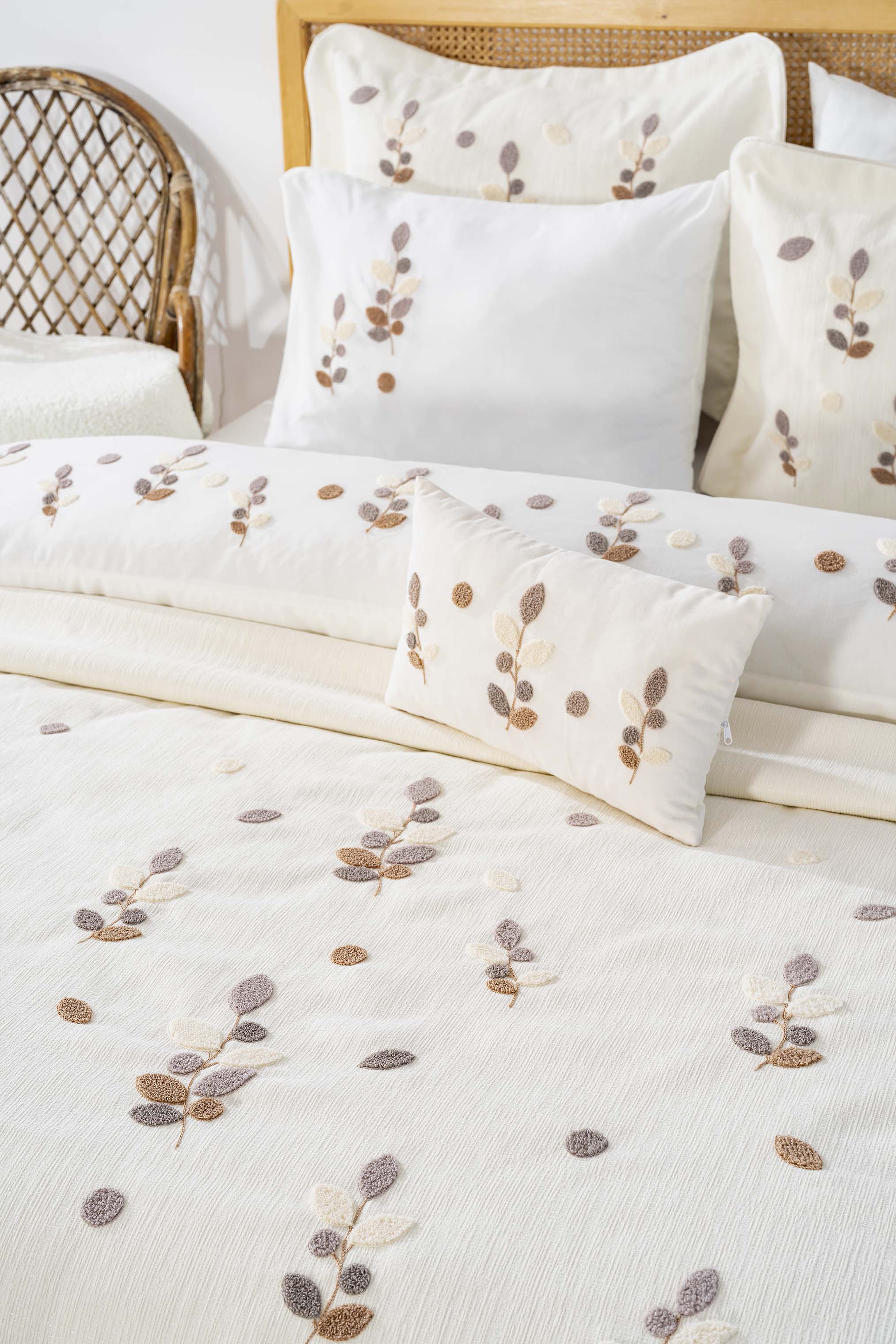Nova Cream Punch Embroidered Double Duvet Cover and Bedspread Bridal Set consists of 8 pieces.