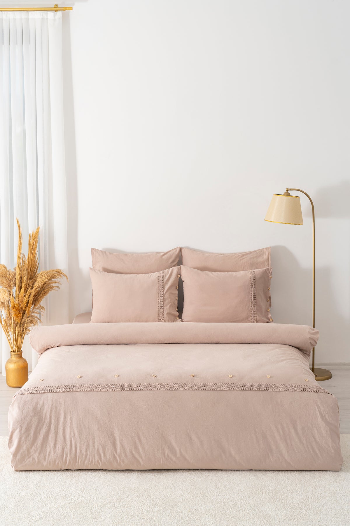 Grace Cappuccino Guipure Double Duvet Cover Set - 6 Piece Dowry Set Product Information: Grace Double Duvet Cover Set - 6 Piece Dowry Set Consists Of 6 Pieces. Thanks To Its Fade-Resistant Fabric, It Preserves The Vividness Of Its Colors Even In Long-Term Use. Made Of Cotton Fabric, It Provides A Comfortable Sleep With Its Breathable Structure And Velvety Texture. It Offers A Soft Touch And A Comfortable Sleeping Experience With Its High-Quality Material. The Embroidery Patterns That Adapt To Any Bedroom With Their Simple And Stylish Appearance Can Be Easily Combined With Your Decoration. Made from 100% washed organic cotton fabric.