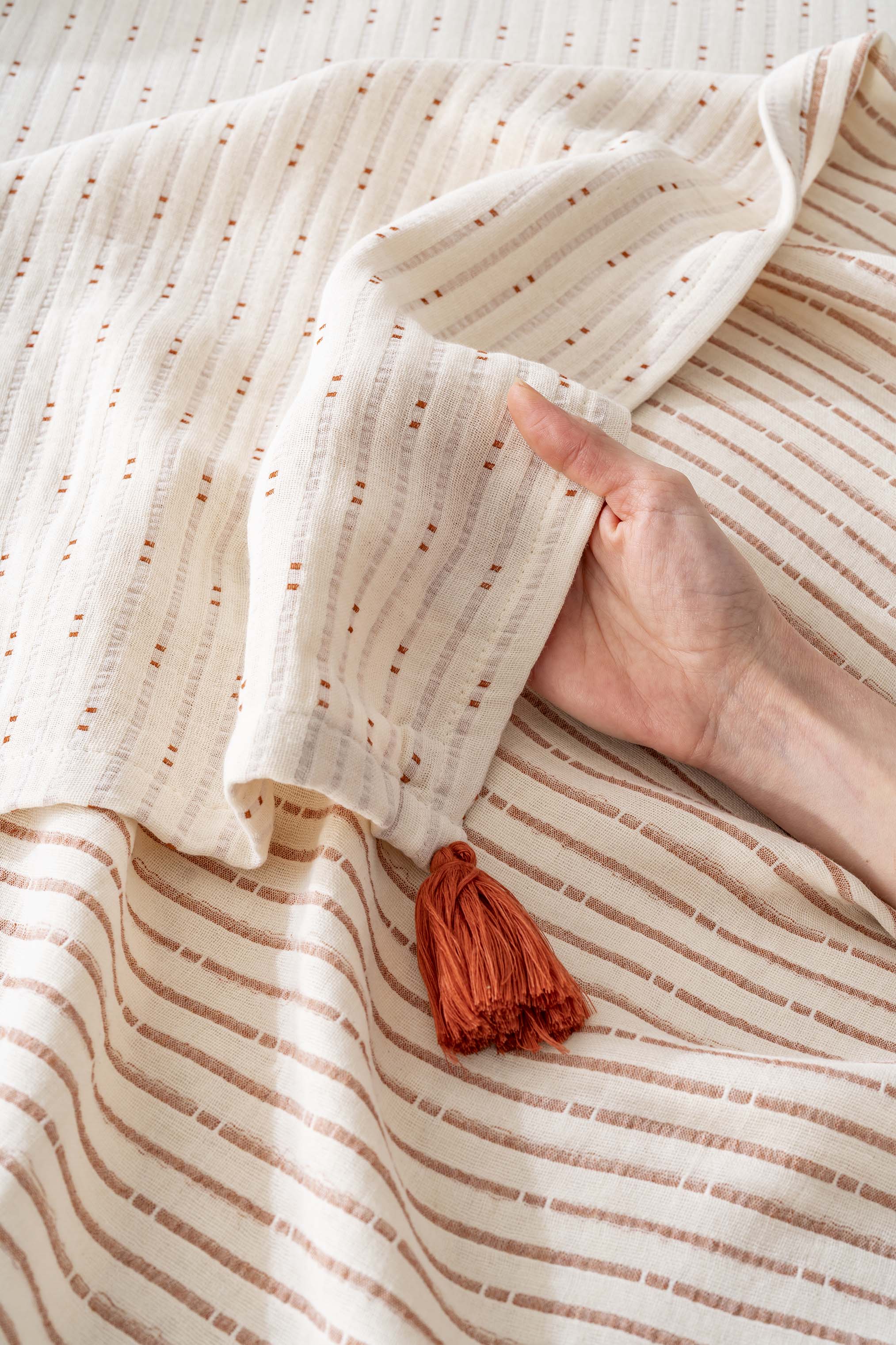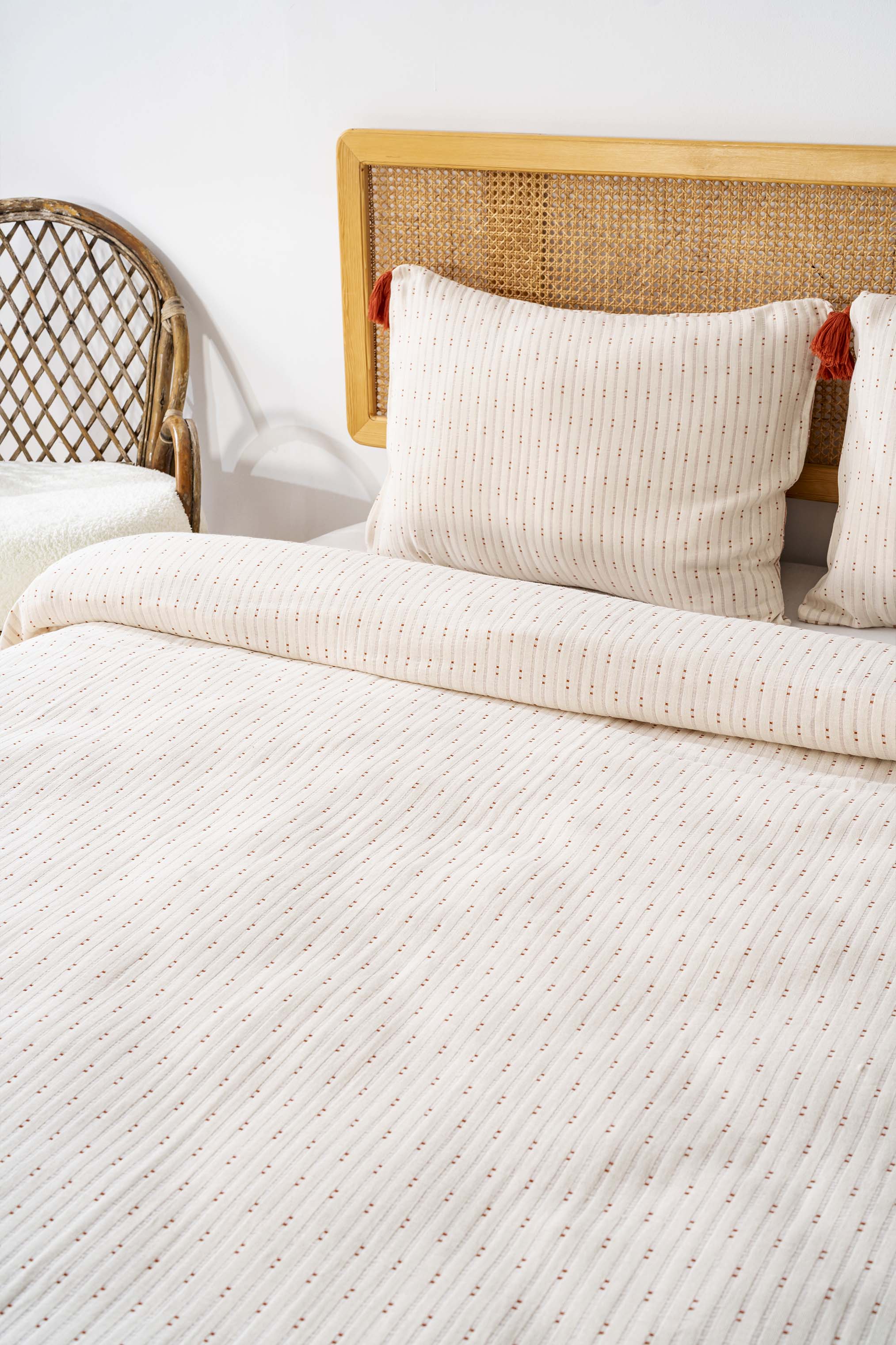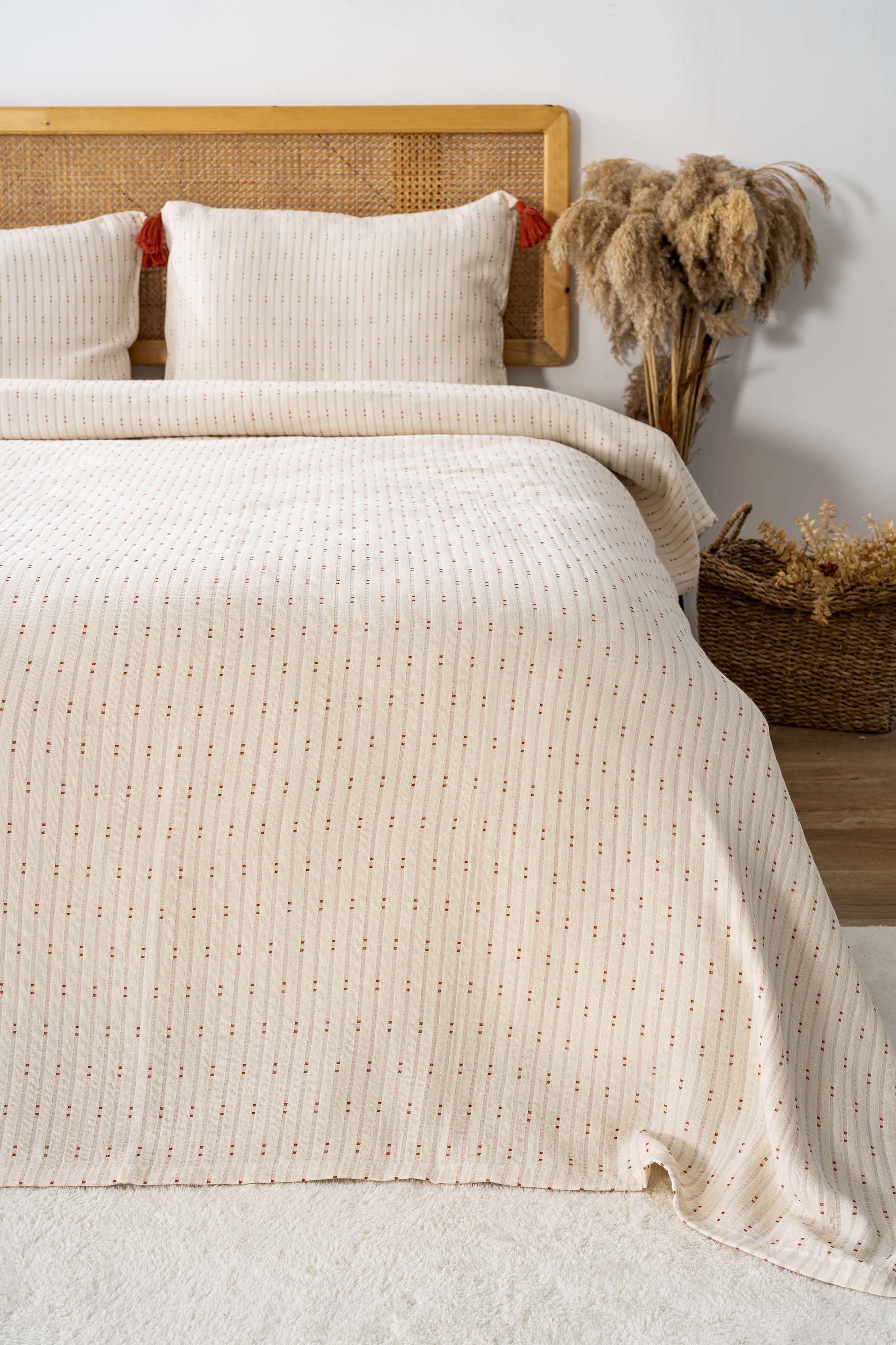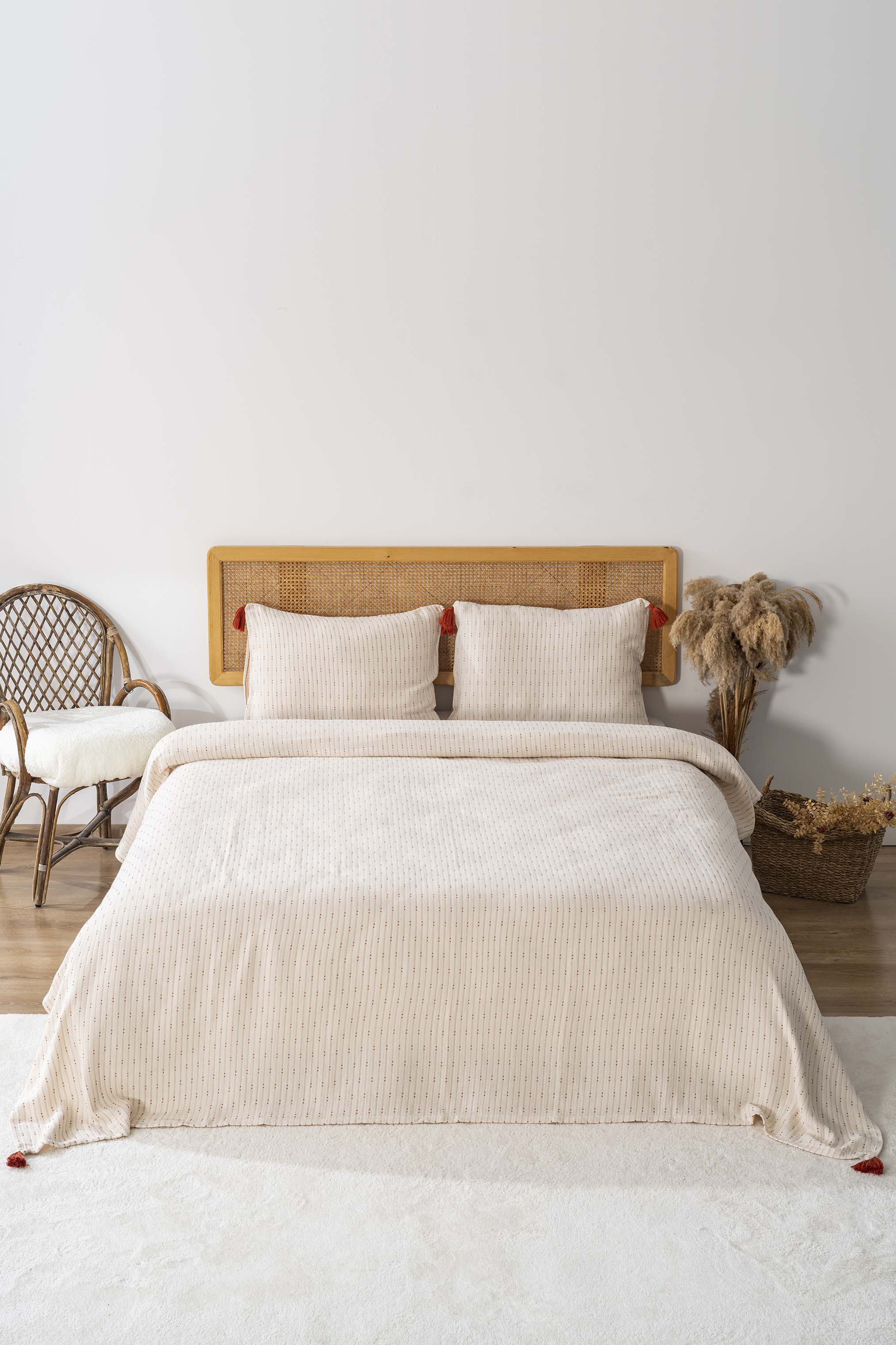 Hermes Brick Double Bedspread Set with Tassels consists of 3 pieces.