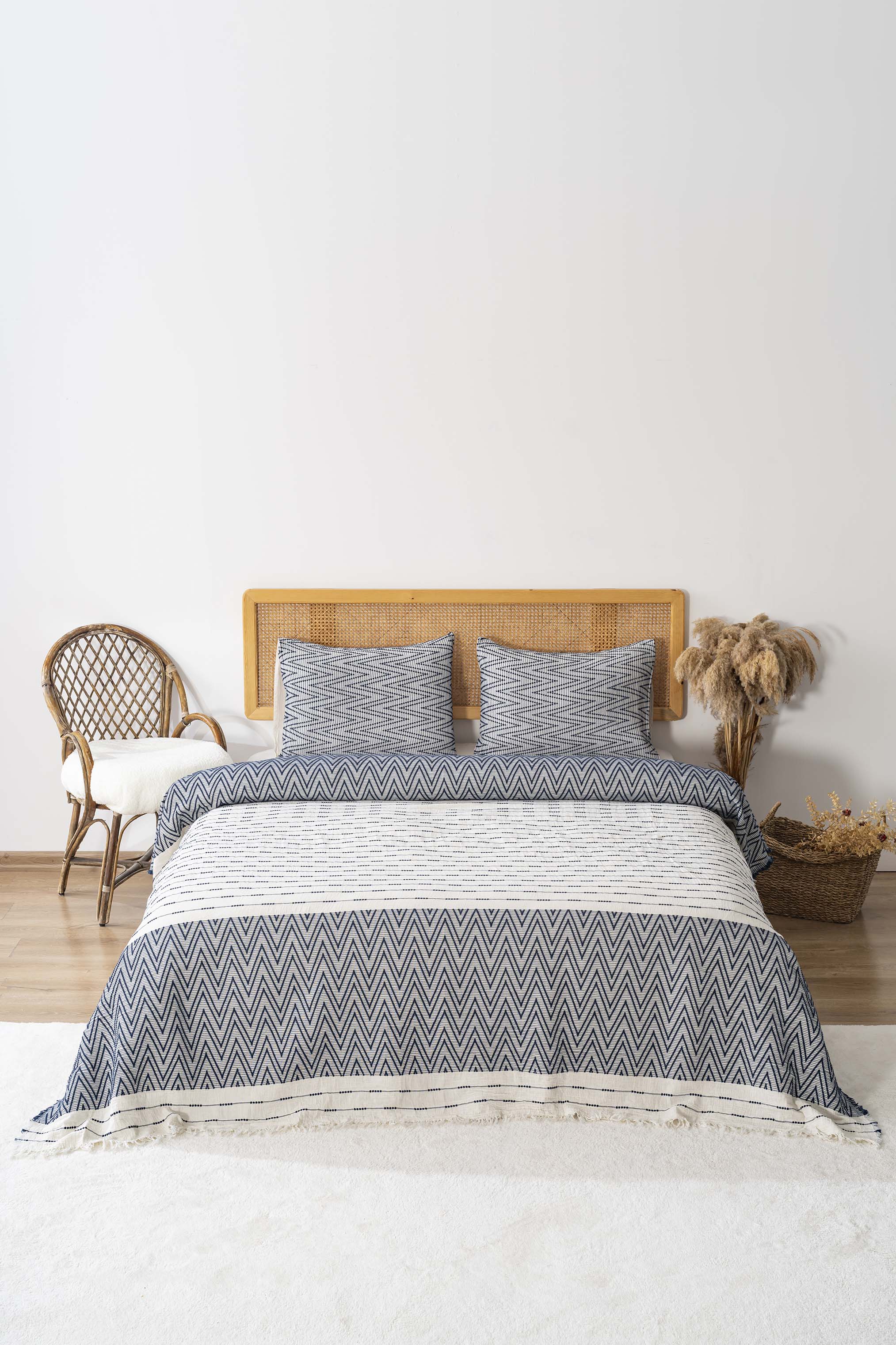 Milena Navy Blue Double Bedspread Set – 3-Piece Sleep & Dowry Set – 100% Cotton