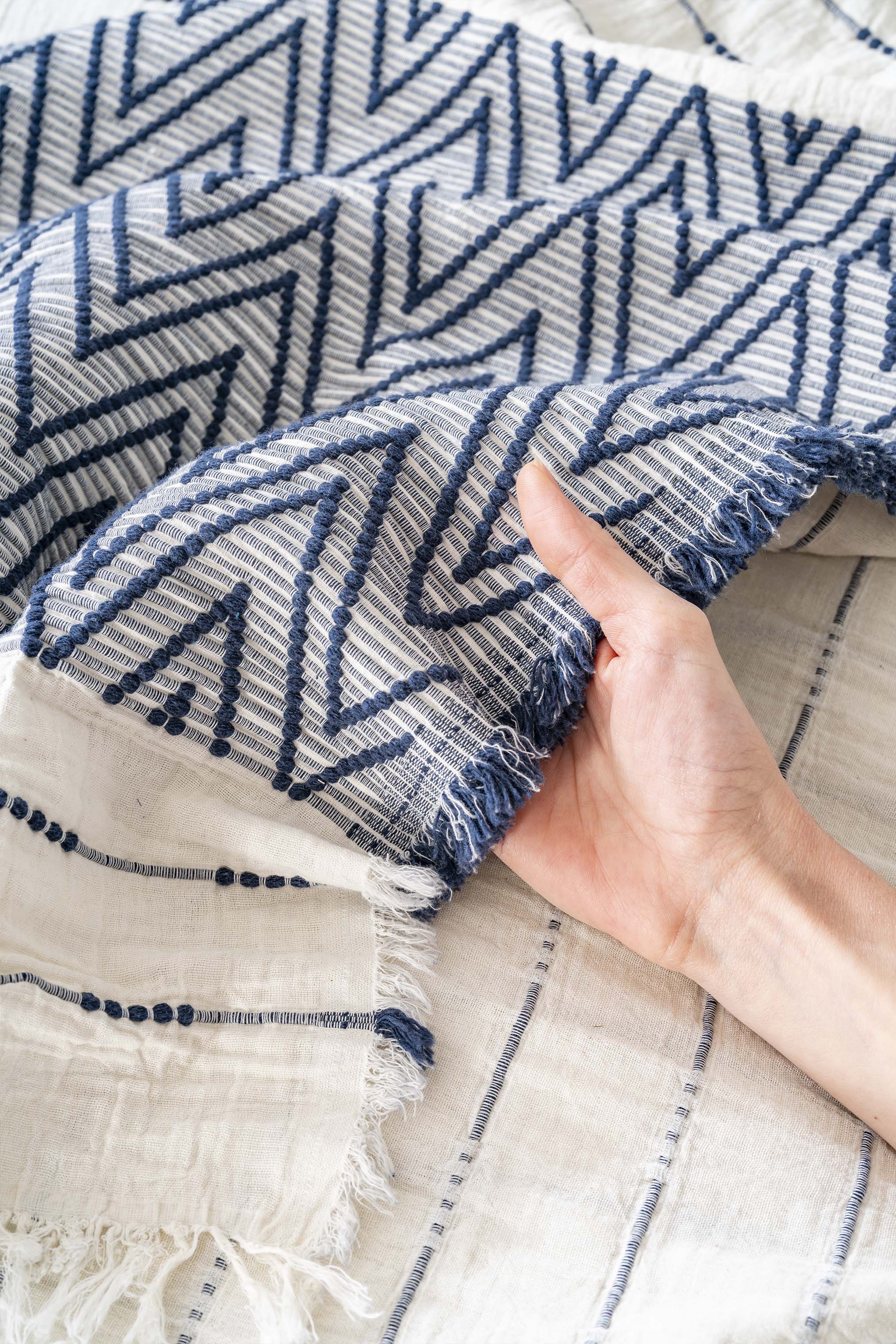 • Milena Navy Blue Double Bedspread Set – 3-Piece Sleep & Dowry Set – 100% Cotton