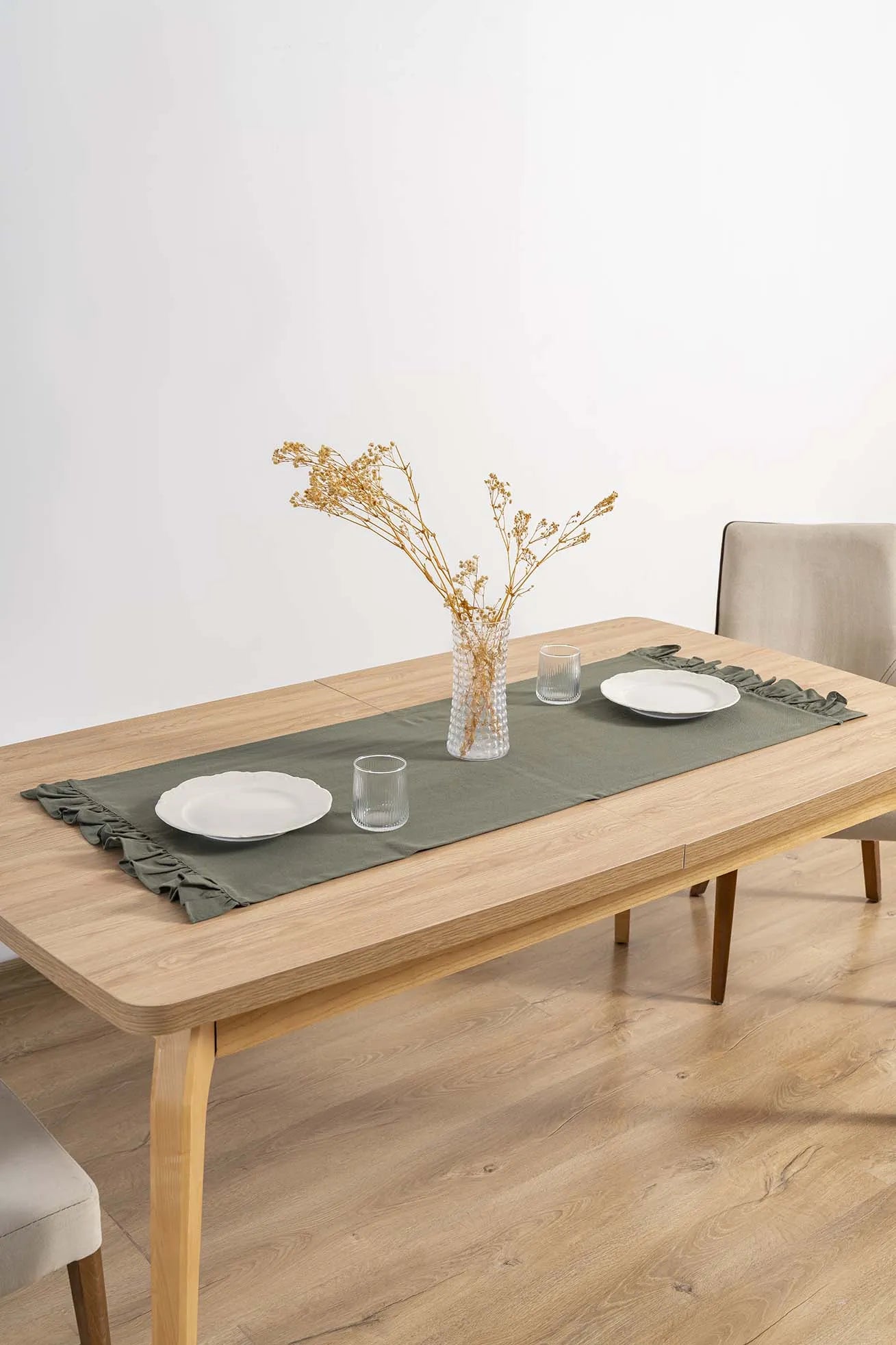 • Ruffle Khaki Ruffled 100% Cotton Raw Linen Runner – 50x130 cm