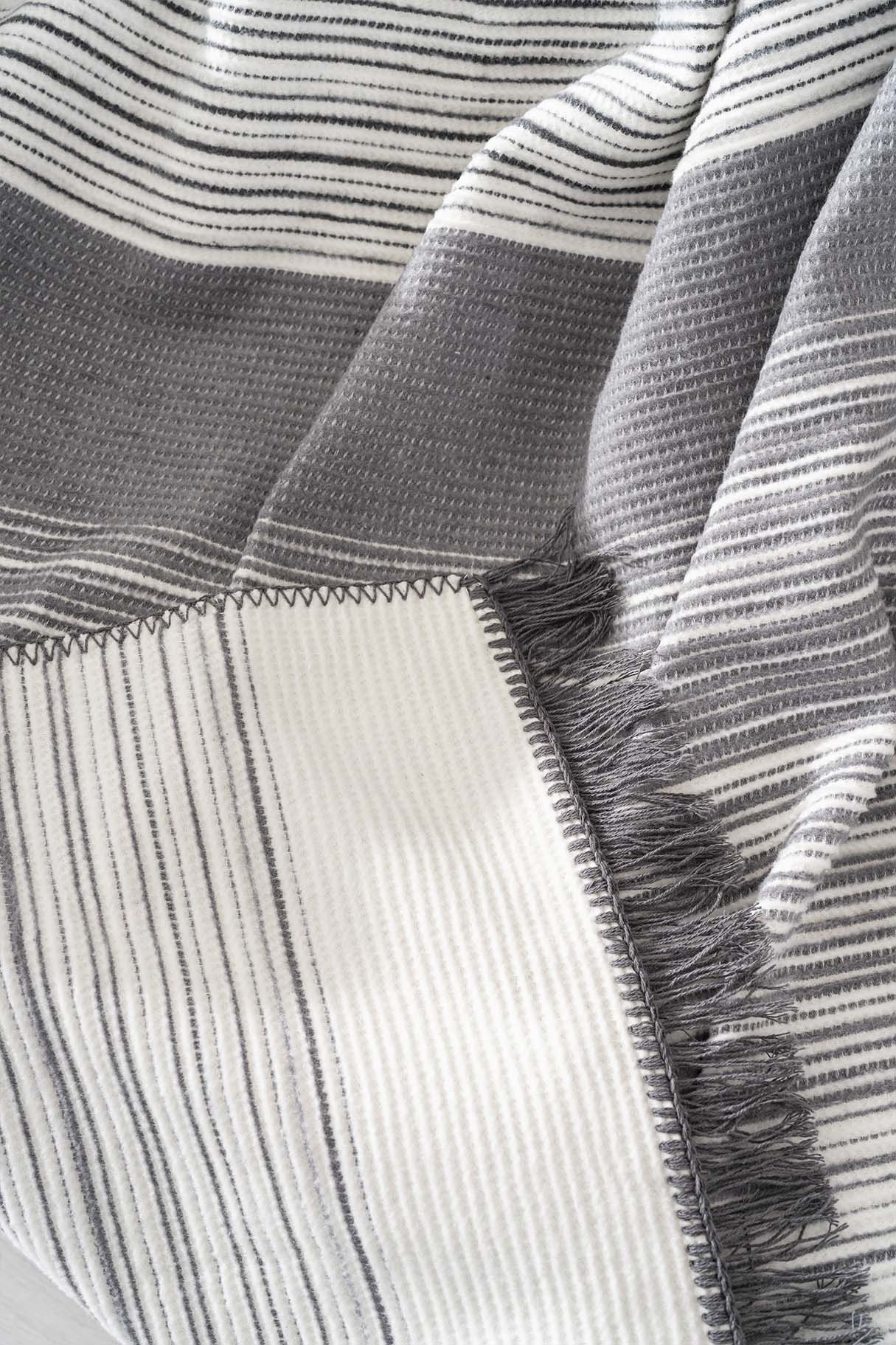 Veloura Anthracite Striped Throw/TV Blanket – Soft & Warm Cotton Blend, Thick Fabric, 130x170 cm