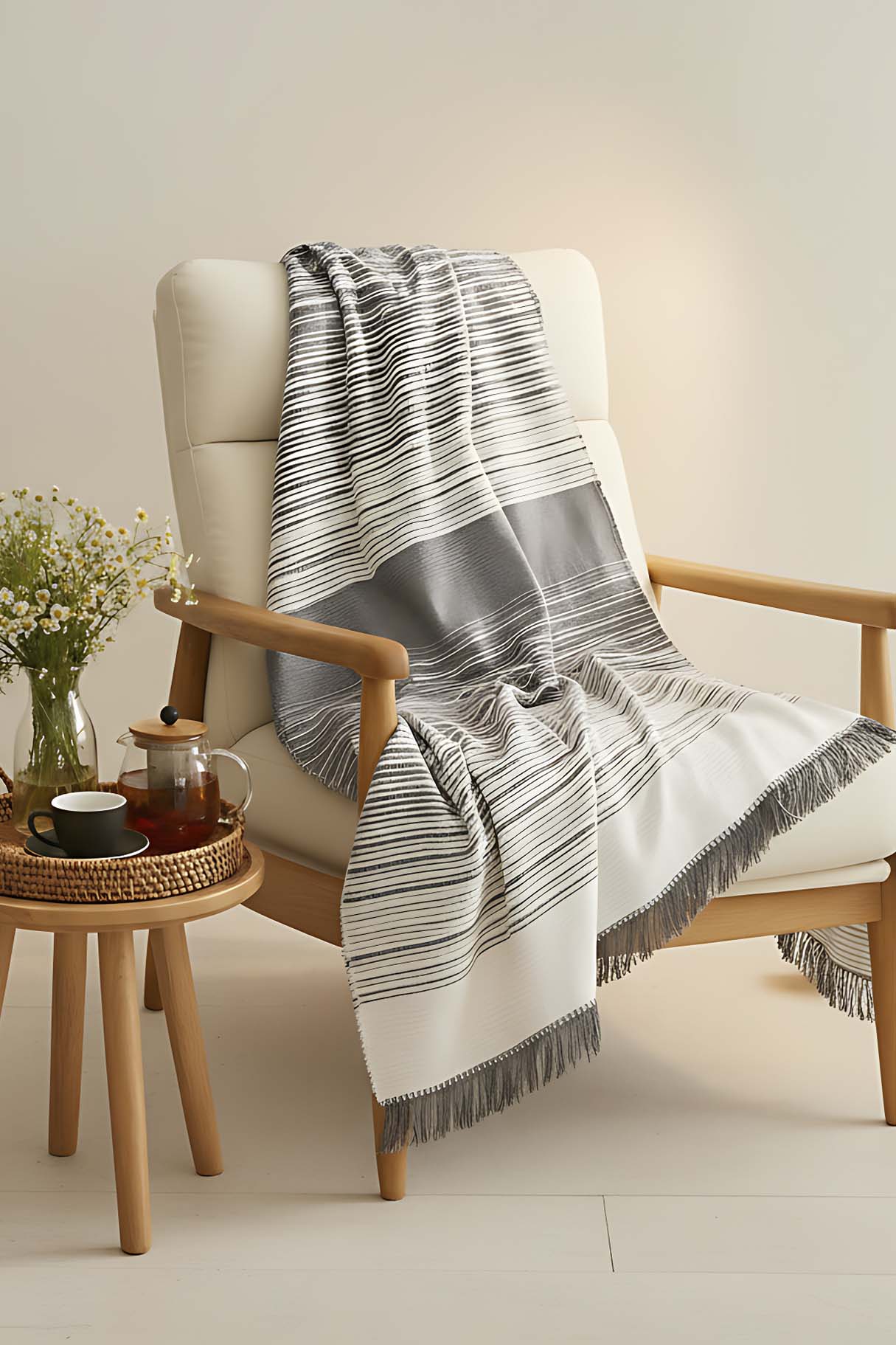 • Veloura Anthracite Striped Throw/TV Blanket – Soft & Warm Cotton Blend, Thick Fabric, 130x170 cm